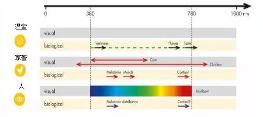 植物和人类对光谱波长的敏感度(接受度)与鸡相似(图5)。