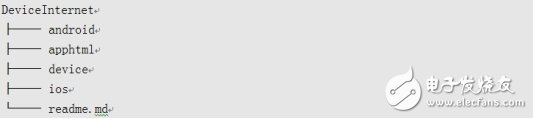 android目录、ios目录、device目录,它们是三个应用程序,分别运行在android手机、iPhone手机、AMR开发板上面,它们采取相同的协议和服务器进行通信。