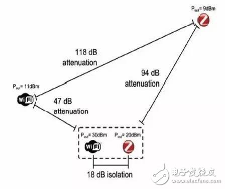 Silicon Labs公司就Wi-Fi和zigbee的共存做了长时间的研究和大量测试,将它们放在一个盒子/模块中时,主要有三个问题:第一,这两种协议进入同一个设备后,在有限的空间中相互紧挨着时,射频(radio)部分相互冲突;第二,Wi-Fi的发射功率高达20多甚至30多dBm,其嗓门很大可能会淹没了zigbee;第三,Wi-Fi总是以很高的速度、非常积极地去传输数据,有可能把所有时段都占了,而且Wi-Fi用了很多备用频段。当我们在自己的实验室里做测试时,Wi-Fi总是抢占了绝大多数资源。