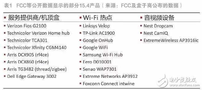 首先来看不同厂商的盒子。从过去6个月(2016年12月到2017年5月)美国联邦通信委员会(FCC)对接入设备进行公告的信息,以及盒子厂商注册时的产品信息可列出表1。