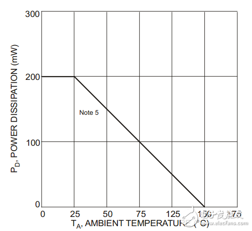 在0~25℃是,耗散功率恒为200mW,在25~150℃时,线性递减,到达150℃,耗散功率为0,在这个温度,硅管已经不能工作了。从这个表中,可以计算出热阻,其线性部分斜率倒数: