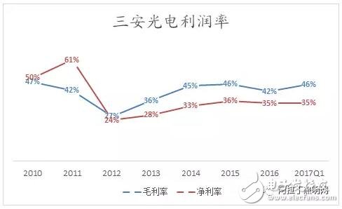 三安光电毫无疑问是中国LED行业最赚钱的公司,无论是毛利率还是净利润率,都高得不像是一家制造业公司。