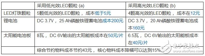 锂电蓄电池本身工作电压DC3.7V,与LED灯珠Vf相仿,为了便于理解,我们采用LED灯珠并联的方式来简化计算,主要目的在于分析高效LED颗粒采用对系统成本的影响。