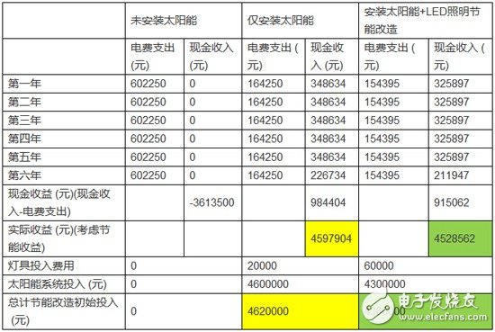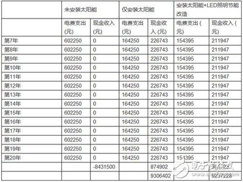 很明显:安装LED和太阳能屋顶,6年回本并获得收益,而单纯安装太阳能板,需要7年时间才能回本。