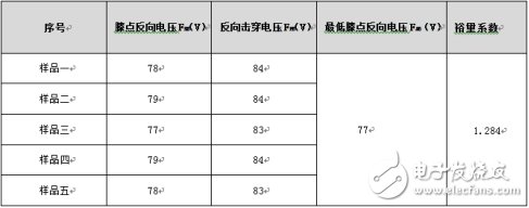 我们都知道二极管有个反向击穿的极限电压,绝大多数的二极管厂商都没把它写入数据手册,但在大多数情况下为了节省成本不可能将二极管反向耐压降额到50%左右使用,那么反向电压裕量是否足够,这对评估该二极管反向耐压应降多少额使用较为安全是有一定意义的。从下表中可看出,反向电压的裕量并不像网上所说的那样是额定反压的2~3倍。