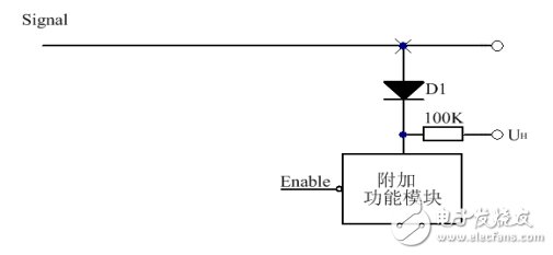 为了减少信号线上的寄生电容,可以在附件功能的接入点处增加一个二极管,这个二极管必须节电容比较小的,通常选用小信号开关管,如果考虑到大电流问题,则需要慎重考虑选型问题。