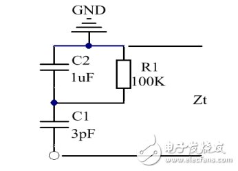 不管正向还是反向接入法,其等效电路都如图8所示。我们假设二极管的节电容为3pF,附件功能模块寄生总电容1uF。如果电阻足够大,那么可以忽略,此时就是两个电容串联,和电阻并联类似,CT=C1*C2/(C1+C2)≈C1(C2较大)。大电容就算变化很大,串联总电容几乎等于小电容,即3pF,有效减小接入电容。