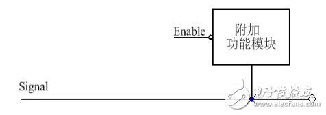 在高速信号线上,通常会附加一些功能,这些功能通常会带来不利的影响,如会产生很大的寄生电容,这个电容视具体的电路模块而定。如果忽略这个电容,可能会影响这个信号的频率。最不幸的是,就算您注意到了这个电容,由于附加的功能模块产生的电容太大,似乎也无能为力。通用附件功能接入法如图5所示: