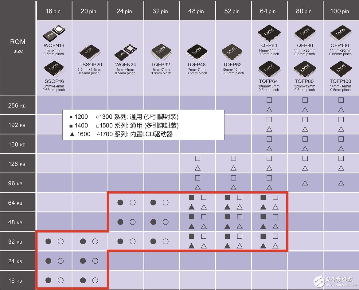 · 引脚数:9种(16pin~100pin)