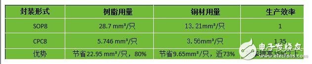 气派科技创新的CPC封装节省了终端客户的PCB空间、缩短信号传输距离,因此信号延迟短,频率特性更好;而且内引线短,可有效改善封装中的冲丝现象。最主要是帮客户节省了成本,以封装材料来计算,以CPC8替代SOP8为例,比较铜和树脂的用量,每年可以为社会节省数亿元成本。