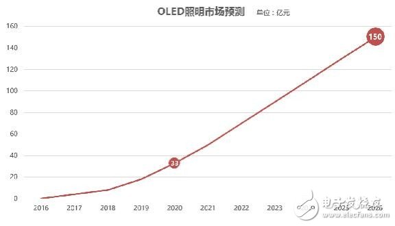 照明一直被认为是发展非常缓慢的行业,直到20世纪90年代LED、OLED的出现,才正式拉开了现代照明发展的序幕。此后,OLED照明在全球照明市场中的占有率开始逐年增长,据ID TechEX预估,2026年OLED照明市场将达到150亿元(约2.2 billion USD)。