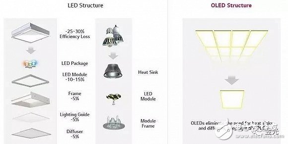▲LED与OLED结构对比