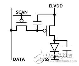 介绍补偿技术之前,首先我们来看看AMOLED为什么需要补偿。下图所示为一个最简单的AMOLED像素电路,它由两个薄膜晶体管(TFT)构建像素电路为OLED器件提供相应的电流。