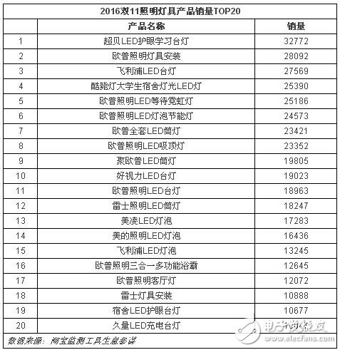 欧普、飞利浦照明、雷士位列LED照明双十一销售前三甲