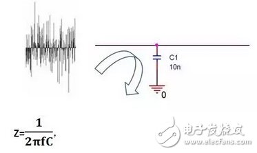 当高频时,电容C由于阻抗Z已经很小了,相当于把高频噪声短路到GND上去了。