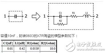 以常见的表贴式MLCC陶瓷电容为例,进行等效模型如下: