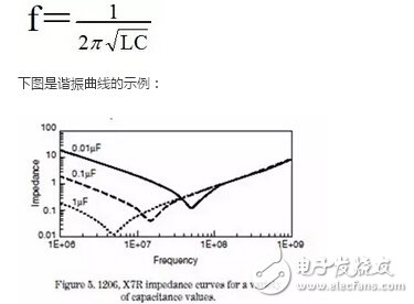 由于等效模型中既有电容C,也有电感L,组成了二阶系统,就存在不稳定性。对电路回路来说,就是会发生谐振,谐振点在如下频率处: