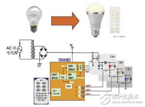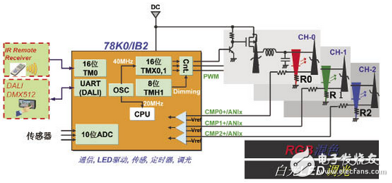 78K0/IB2低成本高亮度LED调光(调色)控制的优点: