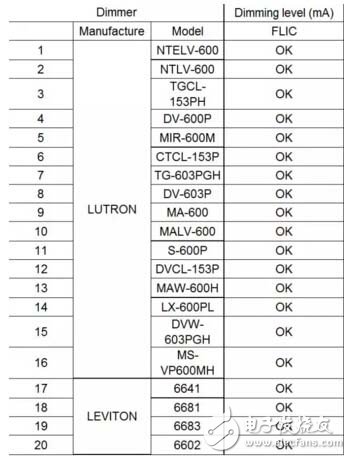 4、兼容调光器列表
