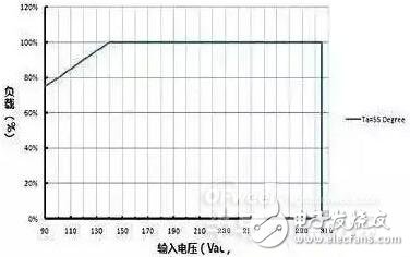 因此,如图 2 当输入电压小于 140Vac 时,要求驱动器的输出负载随输入电压减小而线性减小。看懂如上降额曲线及相应要求后,选用 LED 驱动器时就应该根据实际使用时的环境温度情况及输入电压情况,综合考虑及选择,并适当留出降额余量。