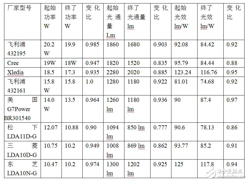 (1)所有各品牌LED灯具的光效起始值和终了值都是不同的。