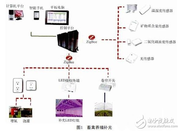 通过研究红光、蓝光和白光对家禽生产性能的影响,推出系统控制光周期的智能养鸡照明产品,实现渐变式禽类养殖控制,并在养鸡场投入使用。智能系统按特定指标控制色温、光强及照明时长,观察其对畜禽的行为习性、生理特性和生长发育产生影响,并有效促进畜禽的生产性能,因此,养殖业生产中的照明不仅要求低能耗和长寿命,而且还应具备LR的可控性。图2所示为补光在畜禽养殖业的应用。