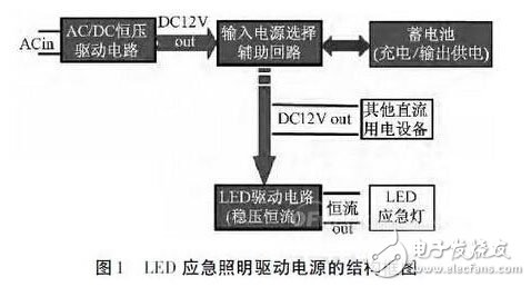 根据此工作原理,LED应急照明驱动电源由四部分组成(如图1所示)。