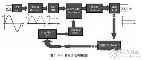 图2 是Buck拓扑结构的开关电源原理示意框图。