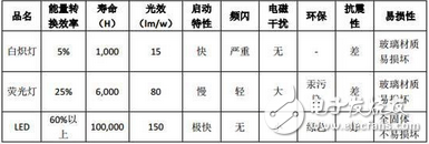 与传统光源相比,LED光源具有节能、环保、安全、牢固、体积小、寿命长、响应时间短、色彩丰富等诸多优势,具体情况见下表: