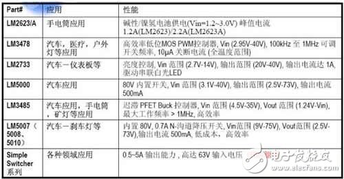表2:美国国家半导体的LED驱动器解决方案一览表