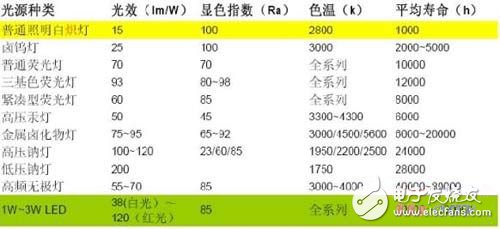 表1:大功率LED在寿命上具有很大优势