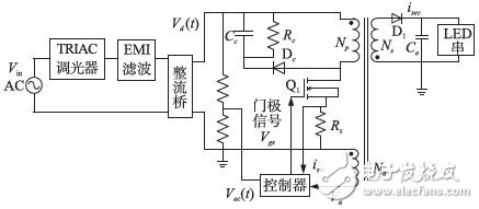 本文设计原边控制的单级反激变换器,适于TRIAC 调光且与LED 驱动器兼容的驱动方案。输出电流由原边检测的信号精确地计算控制,在DCM 模式下操作转换器,输入电流将跟随输入电压得到高功率因数,使LED 驱动器与TRIAC 调光器很好地兼容。此外,使用原边控制,使得输出电流信号和TRIAC 调光信号在原边获得,简化电路功能。输出电流通过TRIAC 导通角的变化改变,得到近乎线性的调光曲线。