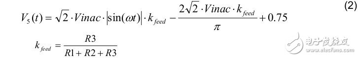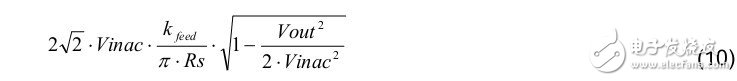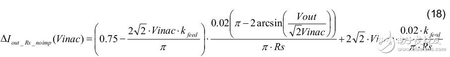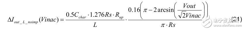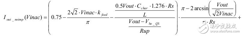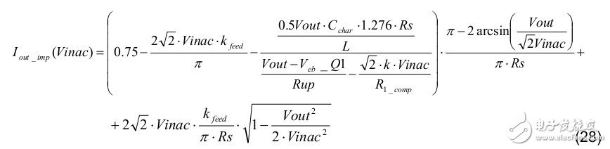 为了推导每个输入电压的LED电流变化,可对公式(10)进行简化,因为Vout一般小于Vinac,并且Vout大于Vbe_Q2。公式可简化为: