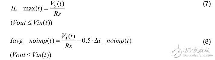 利用第2章的公式(7)和(8),得到电感器的最大电流和平均电流(参见图3):