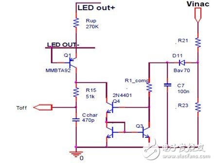 2、恒定电流。这是通过LED输出电压检测toff电路实现。