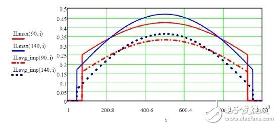 图6 140Vac以下电感电流和输出电流的仿真结果