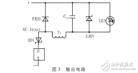 输出电路由基本的BUCK电路和一个稳压二极管DD1组成。如图3所示。