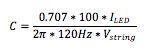 因此,如果纹波电流小于10%RMS,电容必须将LED上的电压控制在1%以内。所需的数值是: