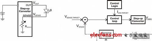 将闪光灯 LED 与一个电流检测电阻串联,然后通过一个升压转换器来驱动,这是一种简单的方法。图 1 描述了这种方法。