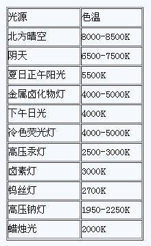 不同光源环境的相关色温度
