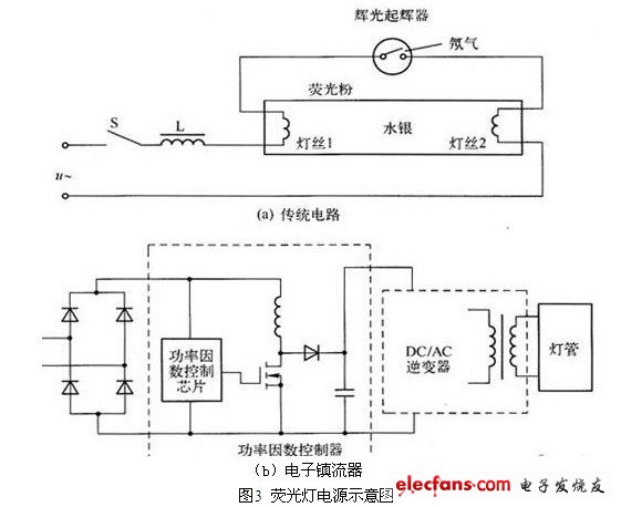 采用内置式电源的最大优点就是可以直接替换现有荧光灯而不需要对原有的接线做任何改变。那么内置式的这种优点是不是也付出一定的代价呢?的确如此,而且这个代价还不小。这要从普通荧光灯的镇流器结构说起: