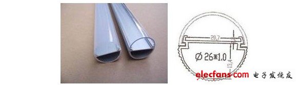 这种半圆柱的表面积为:2πR*h/2=πR*h。对于T8灯管来说,它的直径为26mm,所以半径为13mm。1.2米的T8灯管,其表面积为:π*1.3+120=490cm2,我们知道LED散热器的表面积通常要求60cm2/W。,所以这种半铝管只能散8W左右的热量。而T8型LED日光灯通常输入功率为20W,假定LED的发光效率只有20%,那么有16W的输入电功率都变成热量。而现在只能散去8W的热量,而还有8W的热量无法散去,其结果就是使得LED的结温升高,寿命缩短。