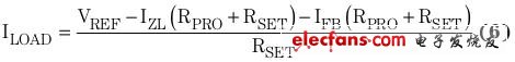 进入电路的误差,由齐纳二极管的漏电流IZL以及升压转换器内部误差放大器的偏置电流 IFB 所引起。方程式 6 是一个经过修改的传输函数,其包括了这些误差: