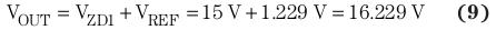 我们为 ZD1 选择一个 15V 齐纳二极管,以表现约 10V 预计负载电压时的最小漏电流,同时还将输出控制在远低于升压转换器最大允许输出电压 (40V) 的某个值。输出电压被控制在齐纳二极管电压 (VZD1),其与转换器参考电压的和为: