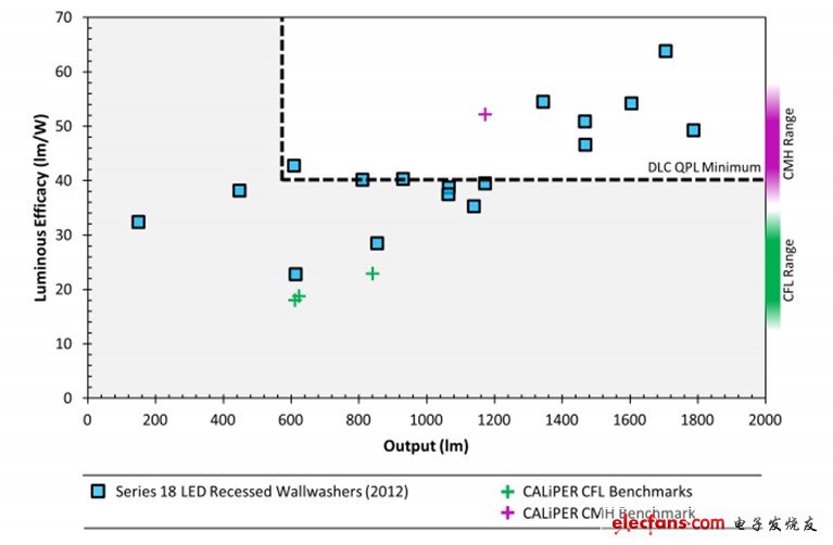 美国能源局(DOE)近日发布了第18轮Caliper测试结果。测试结果显示,和传统灯相比,嵌入式LED洗墙灯已经颇具竞争力,不过,在功效和显指上尚需提高。