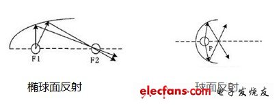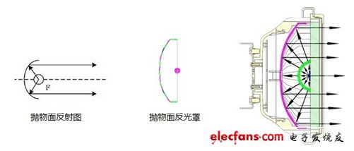 图二:传统透镜和反光罩的光输出原理