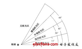 眩光是由于亮度分布或亮度范围的不适宜,或存在极端的亮度对比,以致引起不舒适感觉或降低观察细部或目标能力的视觉现象。目前存在市场上的LED的眩光比较严重,如果人眼长期接触到眩光,就会感到眼、头晕、不舒适之类的现象。在这种条件下工作,会产生厌烦、急躁不安和疲劳,对人们的生产和生活造成很大的影响,无眩光灯为解决以上问题而发明的。