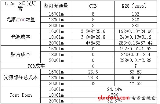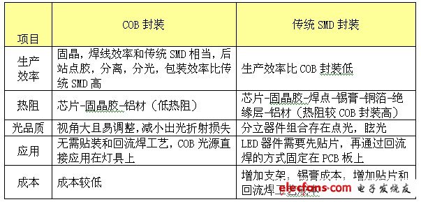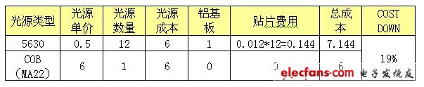 从以上可以看出使用COB比使用传统SMD光源成本可降低19%到32%不等,由此可大幅度降低LED成品的成本,将有利于LED照明尽快普及。