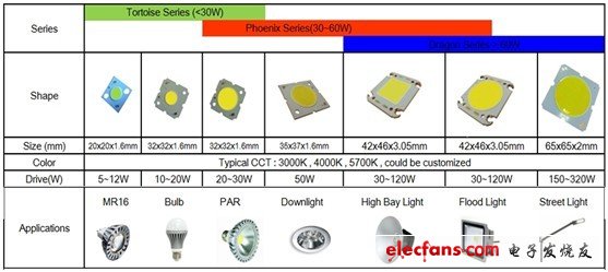 恒日光电Lightan系列提供由3W到320W完整的产品线,可提供客户端不管是在室内照明产品之球泡灯、PAR、崁灯或户外照明产品路灯、投光灯、工矿灯之最完整及最佳选择。且全系列的产品符合均符合市场上通用之透镜/反射杯/电源之设计,提供客户最简易之设计选择,达到客户减少库存、所短设计时程、加速产品推出速度之优势,协助客户快速开阔市场。