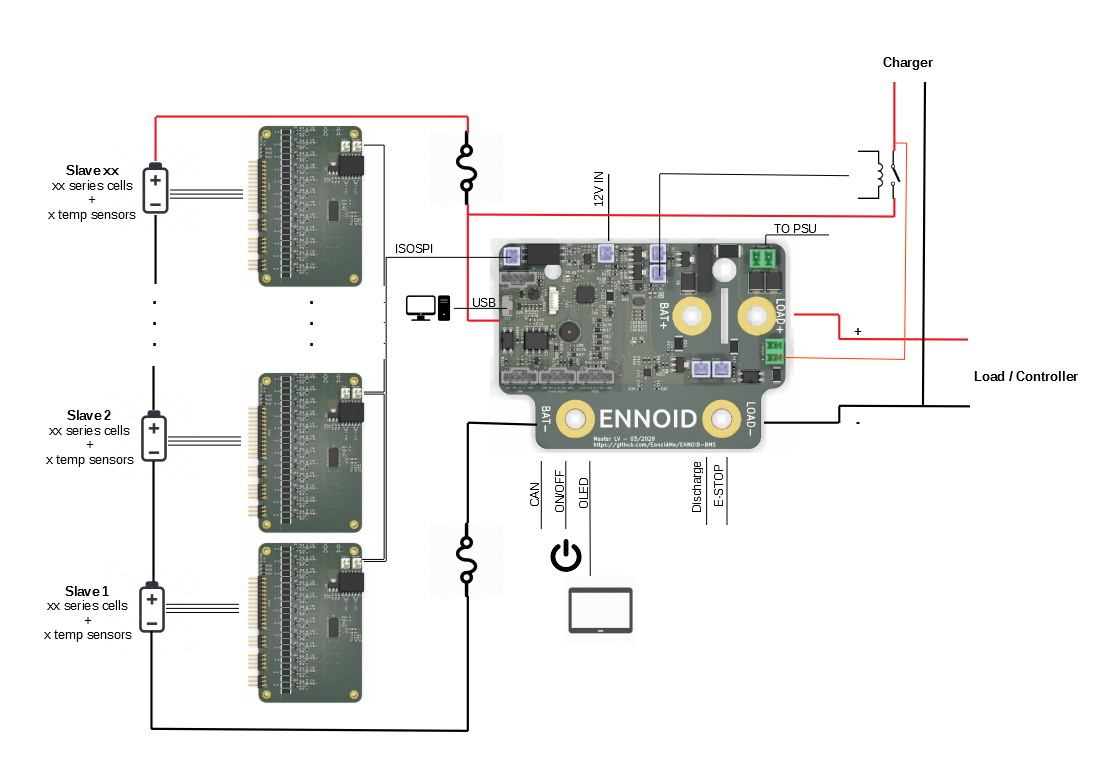 ENNOID-BMS 是一款开源的可配置电池管理系统,由一个基于 STM32 微控制器的母板通过 ISOSPI